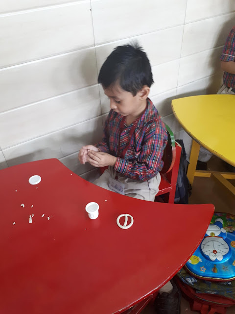students made the sign of peace with the playing dough and also learned the essence of peace in life.
