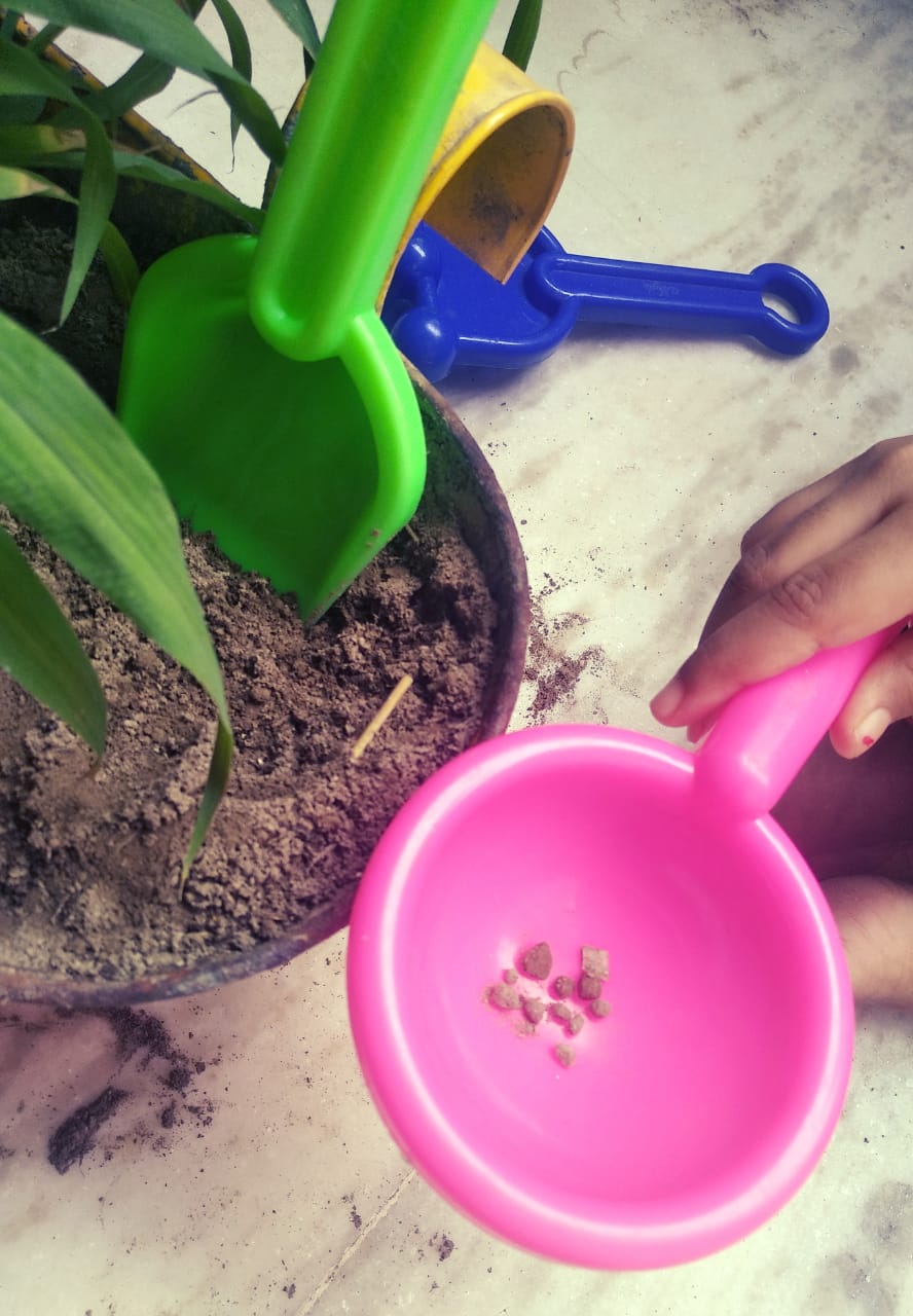 Students of class 1 cambridge collected small rocks from the plants.